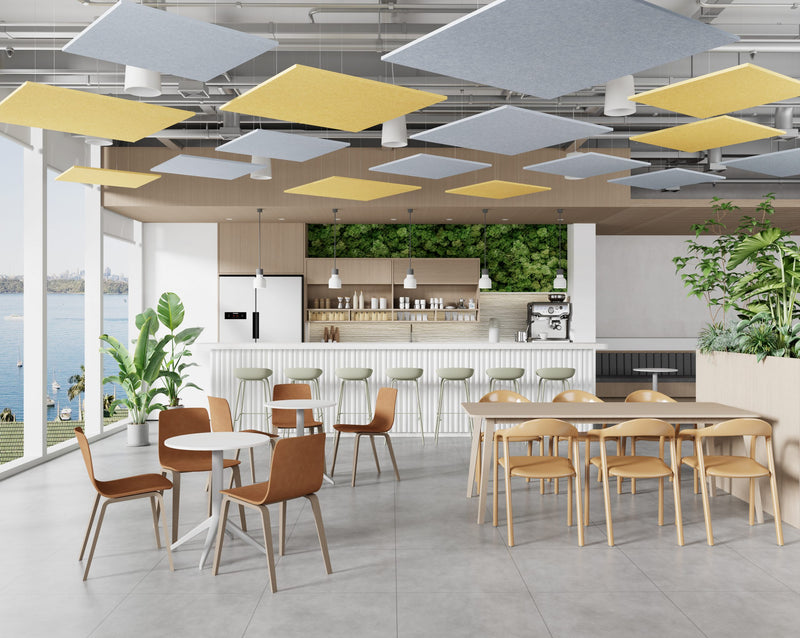 Constructed with durable, recyclable materials like steel, aluminium, and PET acoustic panels made from recycled plastics. Designed for acoustic performance, longevity, and modern use.